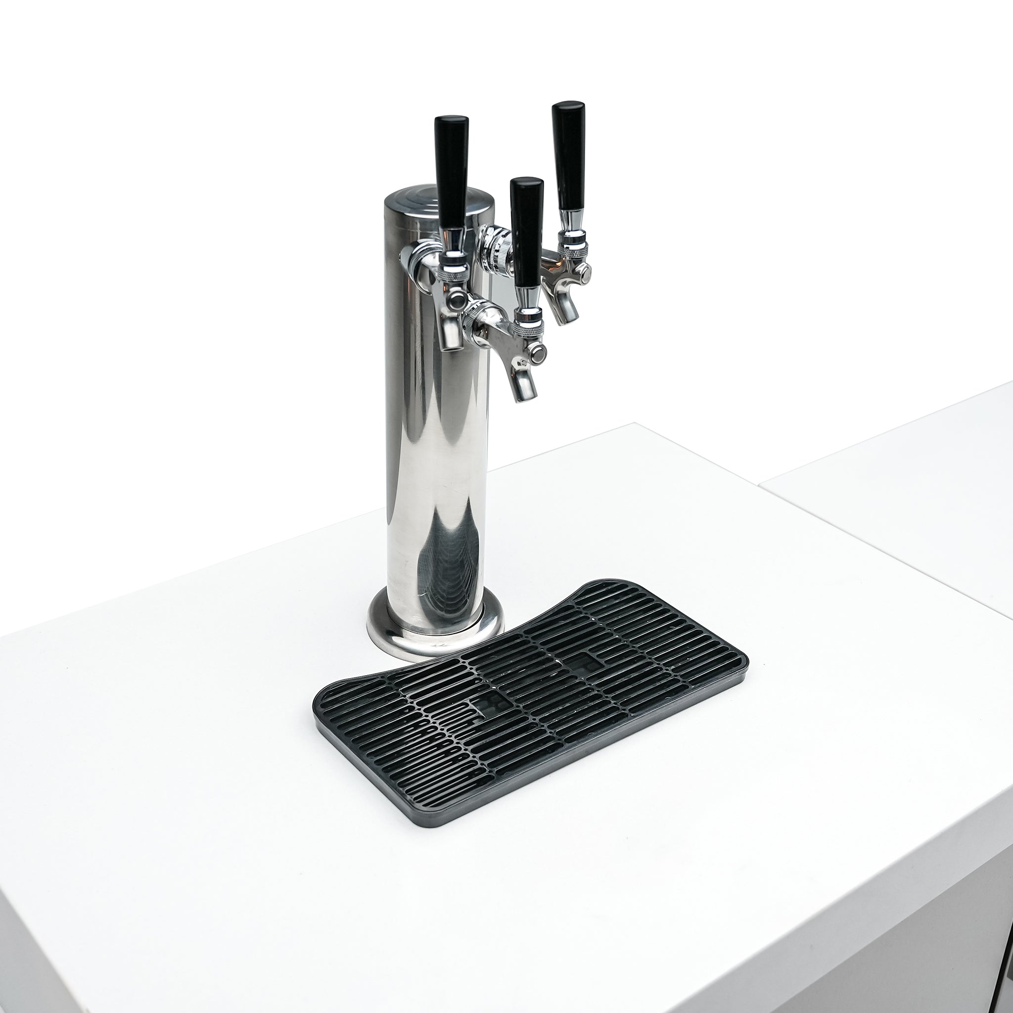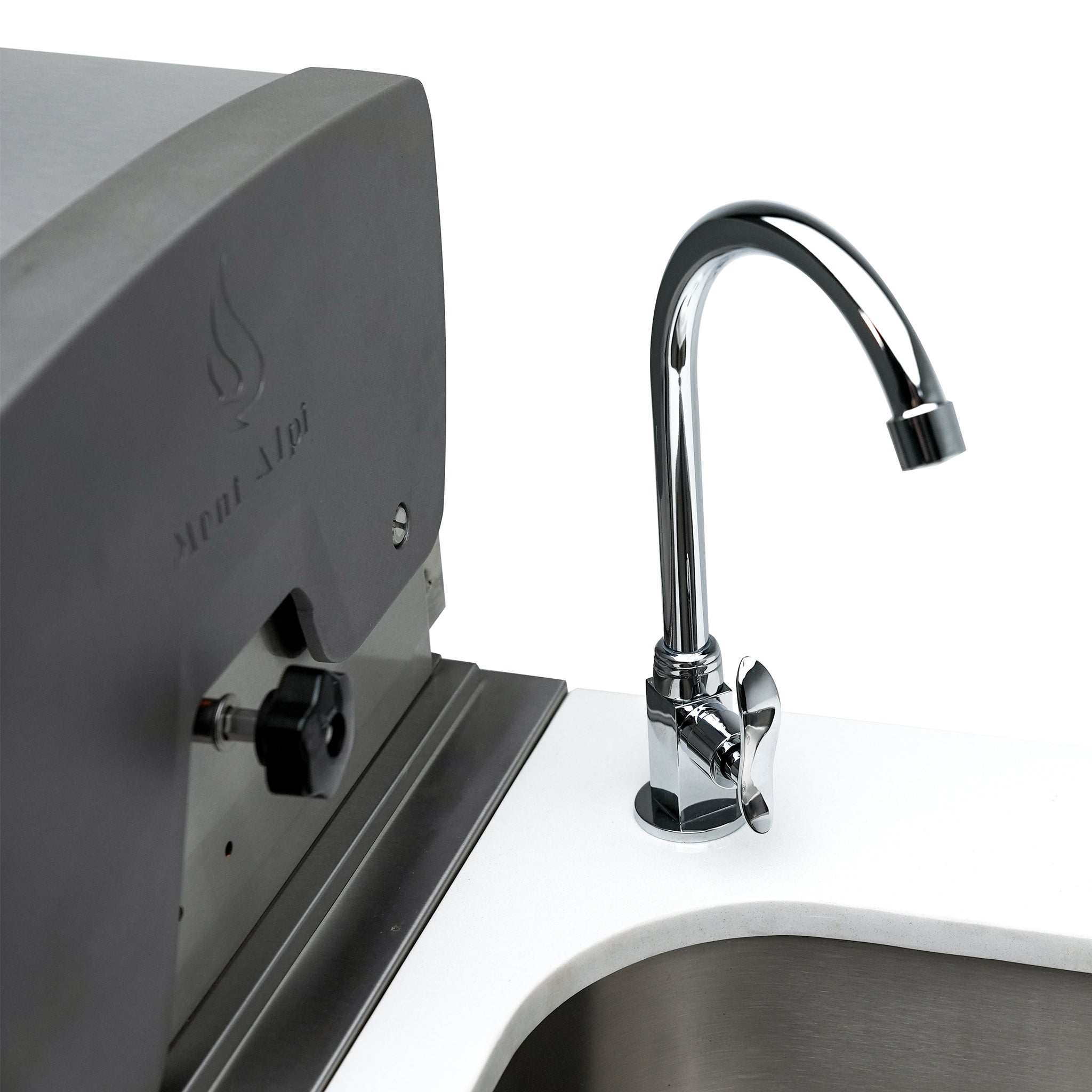 90-Degree Module with Kegerator, Refrigerator, Sink, and Faucet: The MAi805-90KEGBEV includes a 90-degree module that houses a 3-barrel kegerator, an outdoor-rated refrigerator, and a sink with a faucet, making it the ultimate addition to your outdoor entertaining space, even in tighter spaces with right angles.