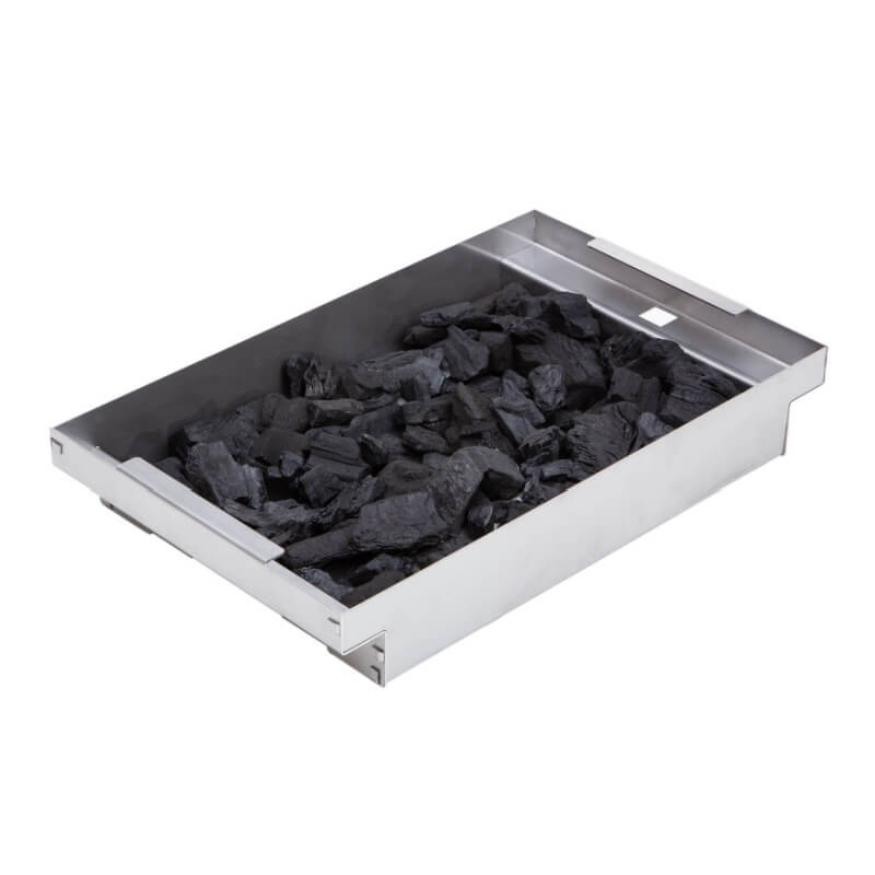 Transform your gas grilling experience with the Delta Heat Charcoal Tray for RCS Gas Grill, a simple yet game-changing upgrade for your RCS gas grill. This rigid 304 stainless steel tray is perfect for instant flavors enhanced with no mess right on your RCS gas grill. No need for lighters and pre-heating your charcoal grill, this drop-in charcoal tray allows you to enjoy the authentic taste of charcoal or lump wood BBQ favorites, right on your gas grill, infusing your dishes with that classic, smoky rich flavor. Constructed from 304 stainless steel, this durable charcoal tray is designed to withstand high heat from your burner below. Featuring an easy drop-in installation where you can simply replace your ceramic briquette trays above one of your gas burners. Easily light your charcoal with the gas burner below, making charcoal grilling pre-heating 1-2-3. Once your charcoal is ready, simply place your cooking grates right back in place for unlimited charcoal BBQ favorites.